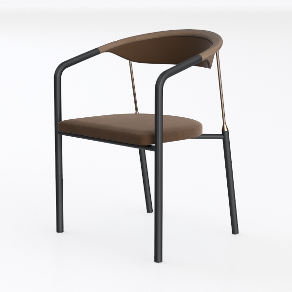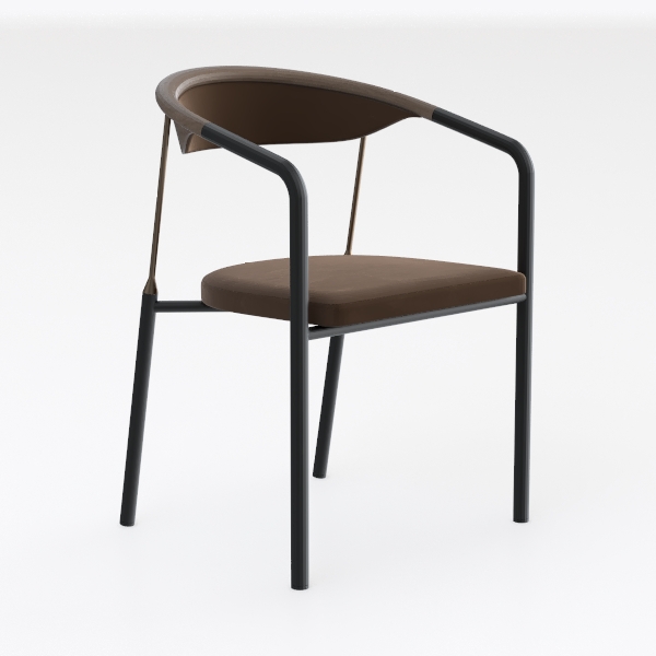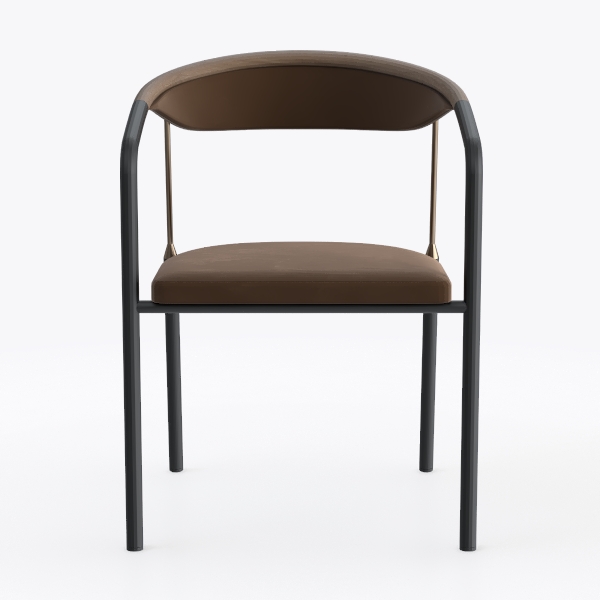 Inspired by organic curves and minimalist design, this chair merges natural warmth with modern simplicity. Its soft, velvety brown upholstery contrasts elegantly with the sleek black metal frame, offering a balanced visual and tactile experience. Ideal for a contemporary dining room or living area, it pairs well with wooden tables and metallic decor. The curved backrest provides gentle support, while sturdy legs ensure stability, blending style and comfort.