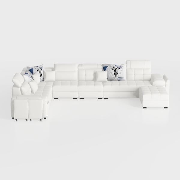 Naomi Home Elizabeth Convertible U Shaped Modular Sofa Sectional Modular Couch with Chaise Oversized Sofa Sleeper Couch for Large Living Room - White