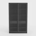 Inspired by modern minimalism, this storage cabinet blends sleek lines with practicality. Crafted from matte black metal frames and clear glass doors, its smooth surfaces exude minimalist elegance, while transparent panels keep interiors visible. Perfect for modern living rooms or studies, it pairs with wooden shelves and metallic accents. Multiple adjustable shelves offer flexible storage; smooth-sliding doors ensure easy access and protect contents.
