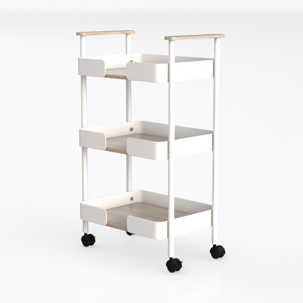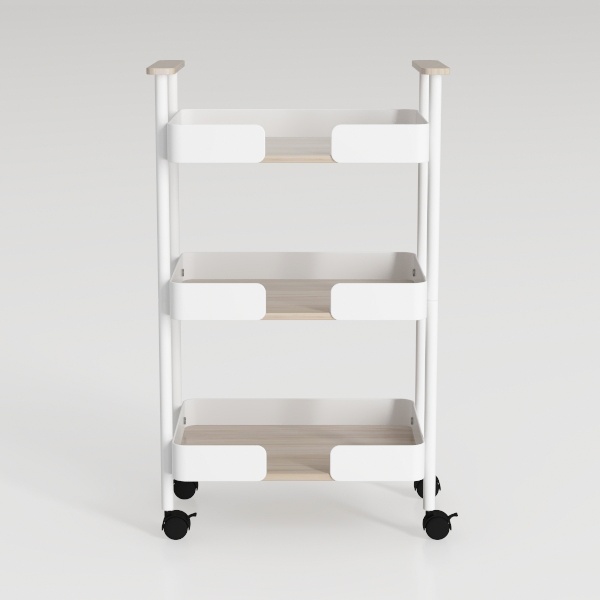 Designed to blend minimalism with practicality, this storage cart features a sleek white metal frame contrasting softly with warm wooden shelves. Its clean lines and open layout create a light, airy feel, perfect for modern, Scandinavian, or minimalist spaces—ideal for living rooms, kitchens, or home offices. Maneuverable wheels and three-tier design offer flexible storage and easy mobility.