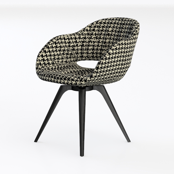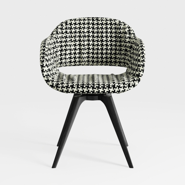 Crafted with inspiration from classic geometric patterns like houndstooth, this chair blends timeless charm with modern allure. The soft, textured fabric in black-and-white checks creates a tactile contrast, while curved arms and tapered wooden legs add sleek, modern elegance. Ideal for minimalist living rooms or home offices, it pairs beautifully with marble side tables and warm-toned rugs to balance its bold pattern. A generously sized seat offers exceptional comfort, with stable wooden legs ensuring durability for daily use.