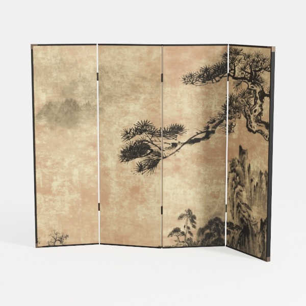 Inspired by classical Chinese ink painting, this folding screen features a textured, aged paper surface with soft, muted tones. Intricate black ink landscapes—pines, peaks, mist—create a serene, timeless visual. Ideal for minimalist or traditional living rooms, pairing with wooden furniture and linen textiles to evoke tranquility. Its folding design allows flexible space division, lightweight yet sturdy for easy placement and durability.