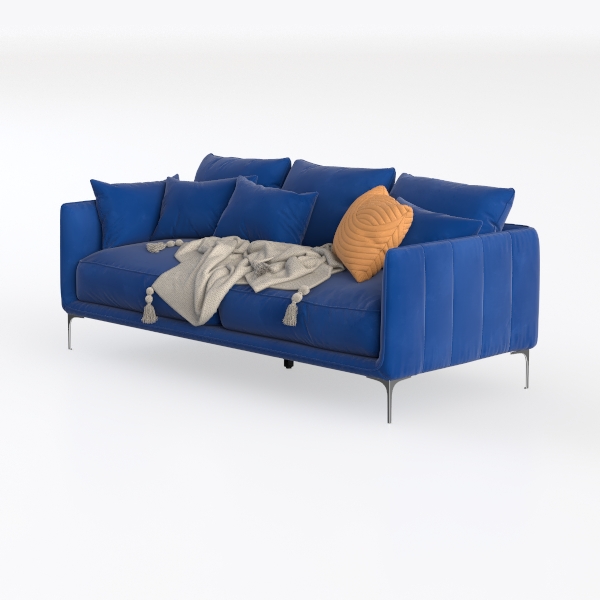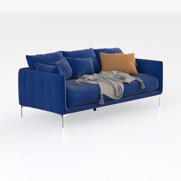 The sofa’s sleek, curved lines and thin, polished metal legs add a modern edge, keeping the design feeling light and uncluttered, while the generously sized backrest and deep seat offer exceptional comfort—ideal for long lounging sessions.