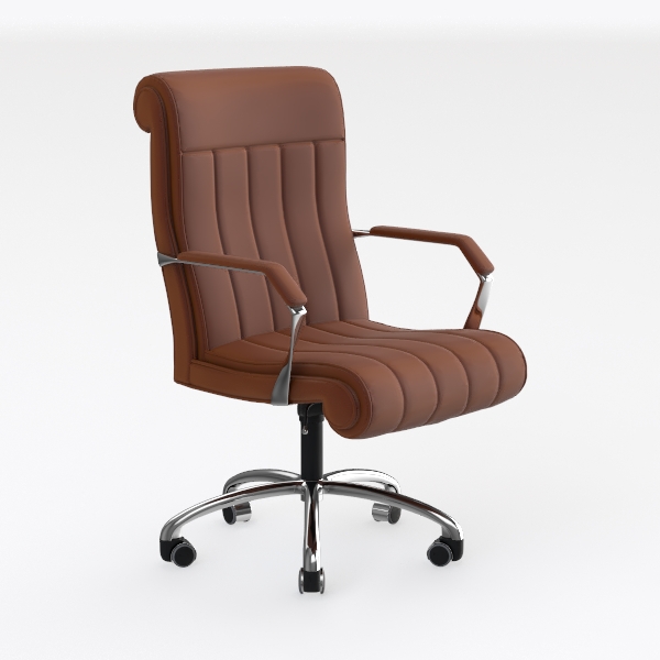 Inspired by mid-century modern design, this chair features a buttery-soft, warm brown upholstery with elegant vertical stitching, adding rich texture. Sleek chrome armrests and a sturdy base complement its clean lines, while smooth-rolling casters ensure easy movement. Ideal for home offices or modern living rooms, it pairs with wooden desks, offering ergonomic high back support for long hours.