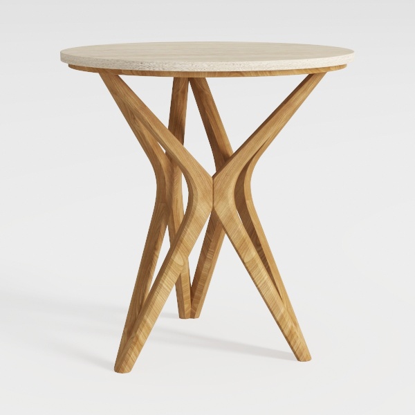 Inspired by organic geometric lines, this small table blends warm oak legs with visible grain and a smooth travertine top. Its light, sturdy frame and subtle curves create a clean silhouette, ideal for modern minimalist living rooms or study nooks, pairing beautifully with marble side tables and matte black floor lamps.