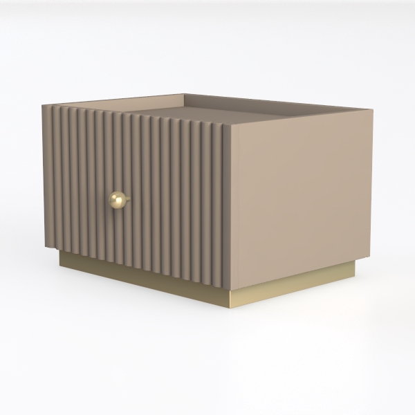 Crafted with inspiration from architectural column patterns, this piece features textured vertical ridges in soft taupe, paired with a smooth gold base and knob, creating warmth and elegance. Ideal for a modern minimalist bedroom or living room, it complements marble nightstands and metallic pendant lights, while the spacious drawer offers ample storage, blending style with practicality.