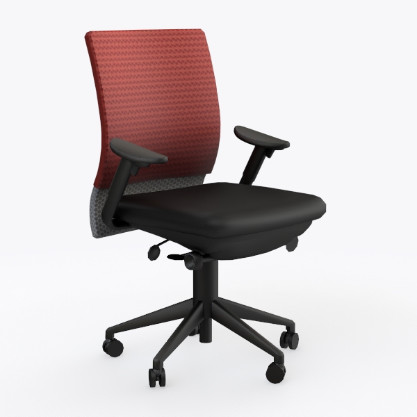 Inspired by the need for ergonomic support in modern workspaces, this chair features a textured red backrest with a subtle geometric pattern, paired with smooth black upholstery and sturdy matte black legs. Soft yet supportive, it blends durability with a sleek, contemporary look, ideal for minimalist home offices or industrial-style workspaces, complementing wooden desks and metal accessories. Height-adjustable with smooth-rolling casters, ensuring easy movement and all-day comfort during long work hours.