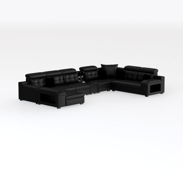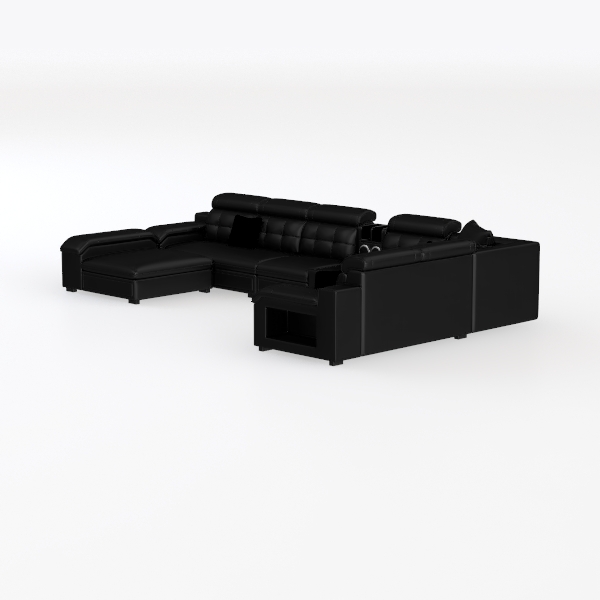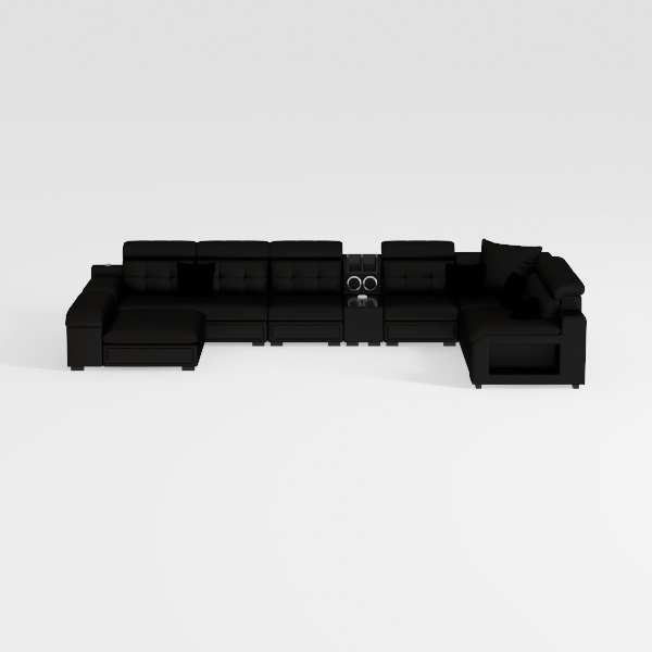 Functionality is key here: the L-shape design fits seamlessly into large or open-concept living rooms, with generously sized seat cushions offering deep, supportive seating for long lounging sessions. The integrated ottoman provides a cozy spot to stretch legs, while the compact central console (with subtle circular cutouts, perhaps) adds a touch of practicality—ideal for setting down drinks or small devices. In short, this sofa isn’t just furniture; it’s a statement of calm luxury, merging style and comfort to transform any living area into a sophisticated retreat.