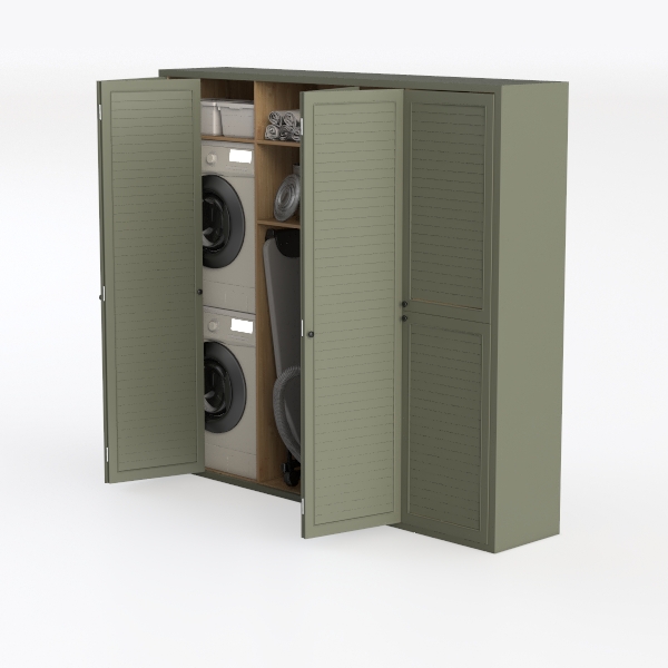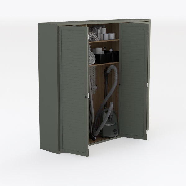 GREATMEET Broom Storage Cabinet, 65" Metal Utility Closet for Brooms and Mops, Cleaning Supply Cabinet with Pegboard, Multifunctional Metal Garage Mop Storage Closet, Grey&White