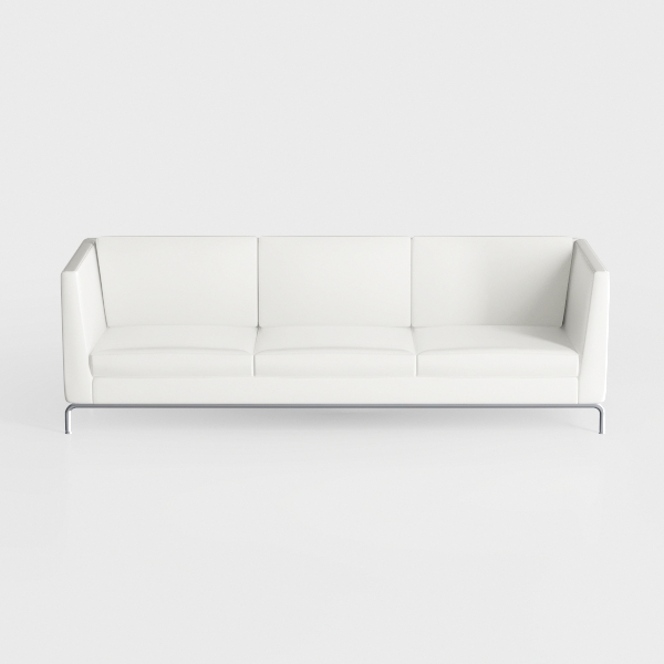 The design of this sofa is rooted in the essence of minimalist aesthetics, drawing inspiration from the clean lines and functional beauty of modern architecture. Its silhouette, with unbroken surfaces and balanced proportions, embodies the philosophy of "less is more," prioritizing purposeful form over ornate details. Visually, the soft white upholstery catches light gently, creating a serene, open atmosphere that makes even intimate spaces feel expansive. The material has a smooth, slightly matte texture—cool to the touch yet surprisingly warm, inviting you to sink into its well-padded seats. The arms curve subtly, softening the sofa’s angular base, while the slender, polished metal legs elevate it, giving the illusion of floating and enhancing the room’s sense of lightness.