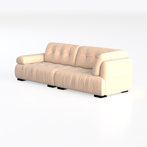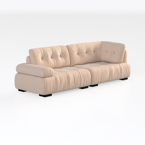 Drawing inspiration from mid-century design philosophy and organic softness, this sofa marries nostalgic warmth with modern simplicity. Its buttery-soft beige upholstery feels like a gentle embrace, inviting fingers to trace the subtle tufted patterns that add texture without overwhelming—each buttoned detail sits at the center of square, plump cushions, creating a rhythmic, cloud-like silhouette. The low-profile black legs ground the piece, balancing its softness with a touch of sleek minimalism, while the overall rounded edges soften the space, making it feel both intentional and unpretentious.