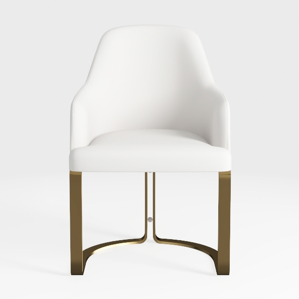 Inspired by mid-century modern minimalism, this chair features soft, smooth white upholstery and sleek gold metal legs, blending timeless elegance with contemporary flair. The velvety texture invites gentle touch, while clean lines and warm gold accents add luxury. Ideal for modern-luxe living or dining, it pairs with marble tables and brass lighting. A generously sized seat and curved backrest ensure all-day comfort, making it both stylish and practical.