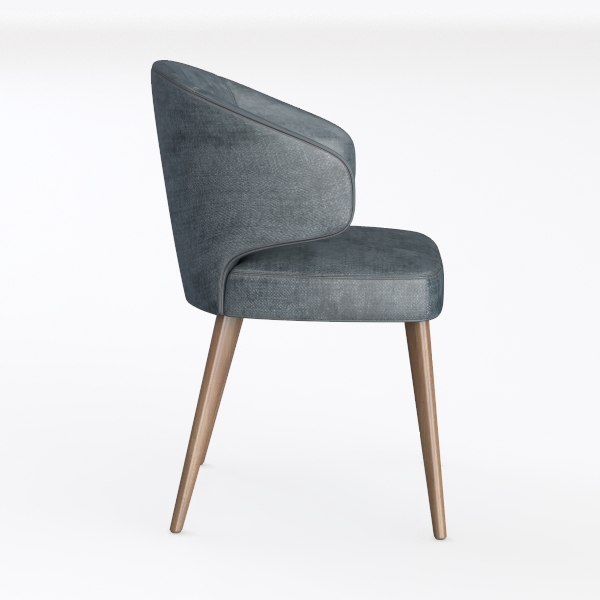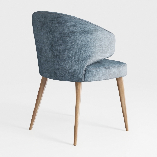 Crafted with mid-century modern inspiration, blending soft organic curves and clean lines. The textured blue upholstery offers a velvety touch, while smooth oak legs add warm, natural contrast. Ideal for a contemporary dining nook or living room, enhancing spaces with understated elegance. Plush padding ensures all-day comfort, and lightweight yet sturdy legs provide steady support.
