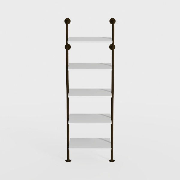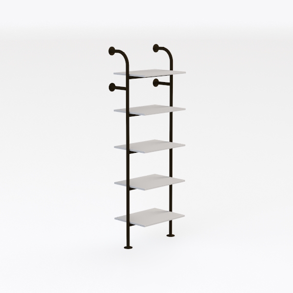 Inspired by mid-century modern minimalism, this light and airy five-tiered shelf features a sleek black metal frame with matte texture, paired with smooth, cool-white shelves. Its clean lines and lightweight design create a visual balance, enhancing the room's spacious feel, while the sturdy metal frame ensures long-lasting use. Perfect for modern minimalist living rooms or study corners, it blends seamlessly with wooden floors and warm-toned decor, offering each shelf to store books, plants, or decor, balancing functionality with aesthetic appeal.