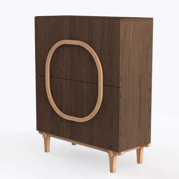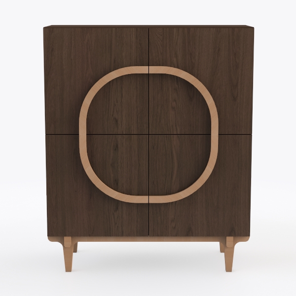 Inspired by organic circular motifs from nature, this cabinet features warm, natural wood grain texture with soft, rounded edges creating a harmonious blend of modern minimalism and organic warmth. Its slender legs add an airy, uncluttered feel, ideal for a modern minimalist living room or Scandinavian-style dining space, complementing light-toned walls and marble/ceramic accents. Spacious storage with smooth-closing doors ensures both functionality and elegance.