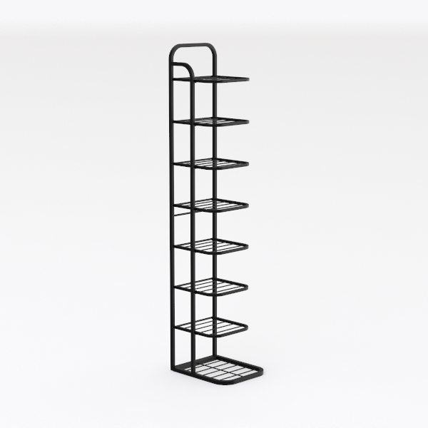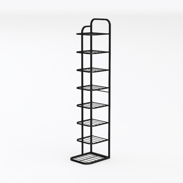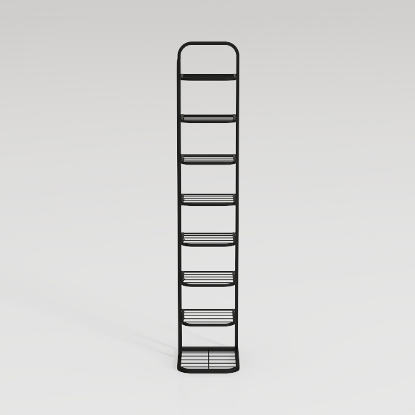 Inspired by geometric minimalism, this sleek storage unit blends clean lines with industrial charm. Crafted from matte black metal, its smooth surfaces and balanced proportions offer a cool, tactile feel, while the vertical design adds a modern edge. Ideal for modern, Scandinavian, or industrial spaces, it fits entryways, living rooms, or bedrooms, pairing beautifully with wood or metal accents. With seven tiers, it maximizes vertical storage, keeping shoes, books, or decor organized and accessible, enhancing both functionality and aesthetic appeal.