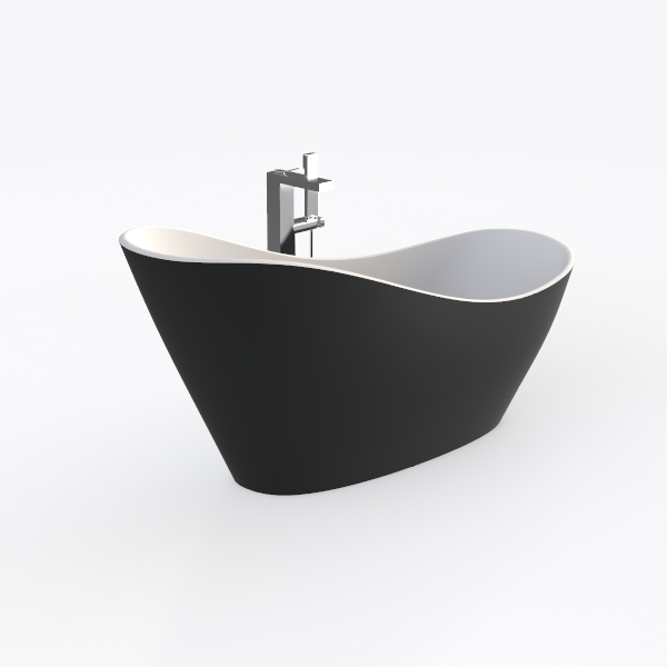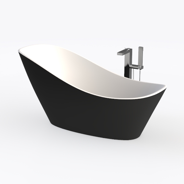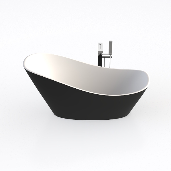 67 inch Stand Alone Tub Freestanding Acrylic Bathtub – Matte Black Outer and White Inner Soaking Tub with Chrome Overflow, Ideal for Contemporary Homes and Relaxation