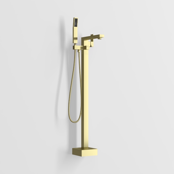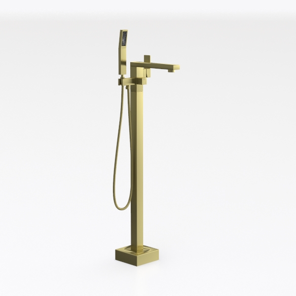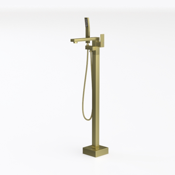 Freestanding Bathtub Faucet Tub Filler Brushed Gold Floor Mount Faucets Brass Single Handle with Hand Shower