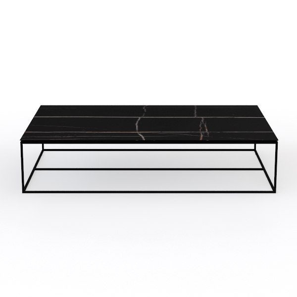Inspired by the organic patterns of natural marble, this table features a sleek black surface with delicate white and gold veining, creating a striking visual contrast. Its smooth, cool-to-the-touch marble top feels luxurious, while the thin black metal frame adds a modern edge. Perfect for a contemporary living room, it pairs beautifully with leather sofas and glass coffee tables, offering ample space for drinks and decor with its sturdy, minimalist design.