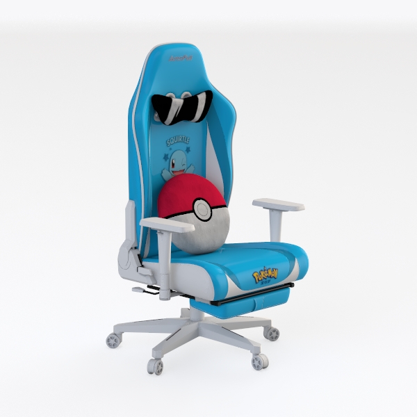 Inspired by Pokémon, this gaming chair blends playful spirit with cozy home comfort. Vibrant blue upholstery with crisp white accents, featuring Squirtle’s design and a Poké Ball-shaped cushion, exudes energy. Perfect for gaming dens or bedrooms, it elevates a modern, playful gaming aesthetic. Ergonomic padded backrest and armrests ensure long-hour comfort, with smooth-rolling casters for easy mobility.