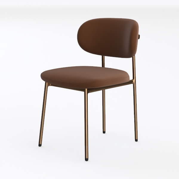 Designed with organic curves and minimalist elegance, inspired by natural forms and mid-century design. The warm brown upholstery offers a soft, smooth touch, with a matte finish creating a subtle, inviting glow. Perfect for a contemporary dining room or living area, pairing beautifully with marble-top tables and wooden floors. Sturdy metal legs ensure stability, and the rounded back and seat provide ergonomic comfort, ideal for daily use and gatherings.