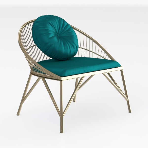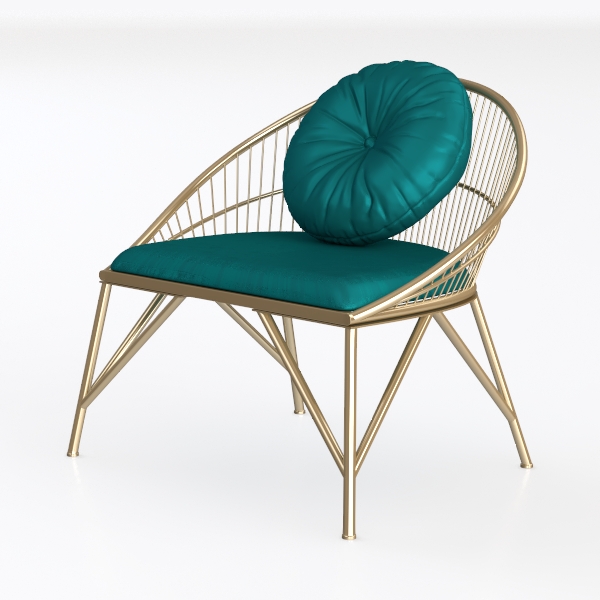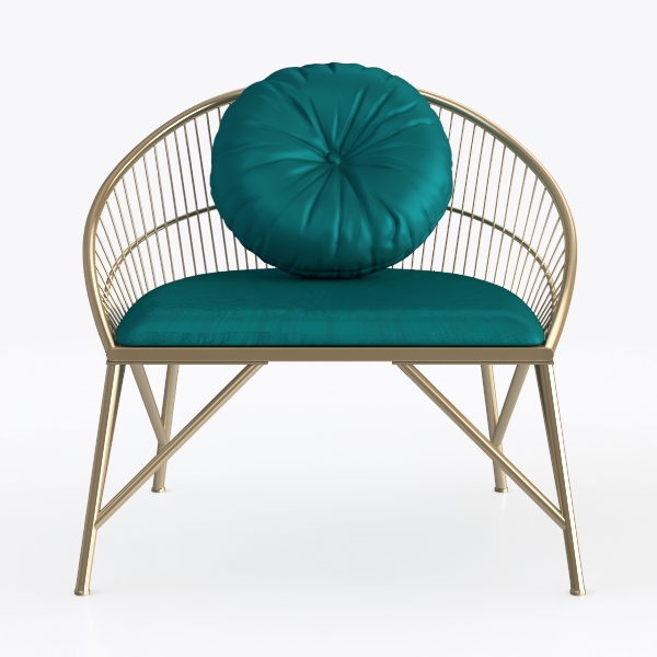 The frame, crafted from polished gold-tone metal, feels cool and substantial to the touch, its smooth surface catching light subtly. The seat and backrest are upholstered in a rich teal fabric, velvety and soft to the eye, with a plush, inviting texture that contrasts beautifully with the frame’s crisp lines. This combination of materials creates a visual harmony: the warm gold of the metal grounds the look, while the vibrant teal adds a lively, sophisticated pop.