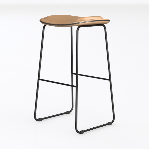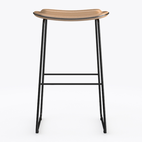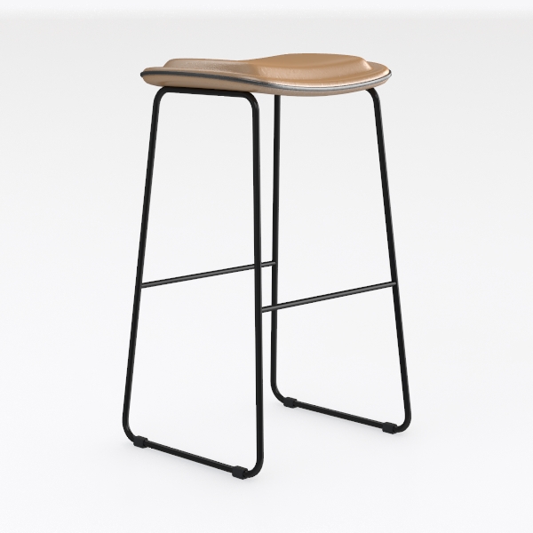 Inspired by organic curves and minimalist geometry, this stool features a soft, supple leather seat that contrasts with sleek black metal legs, blending warmth and modern edge. Its contoured design offers optimal support, making it perfect for a contemporary kitchen island or minimalist bar area, complementing both wood and marble surfaces with slender, angled legs ensuring stability.