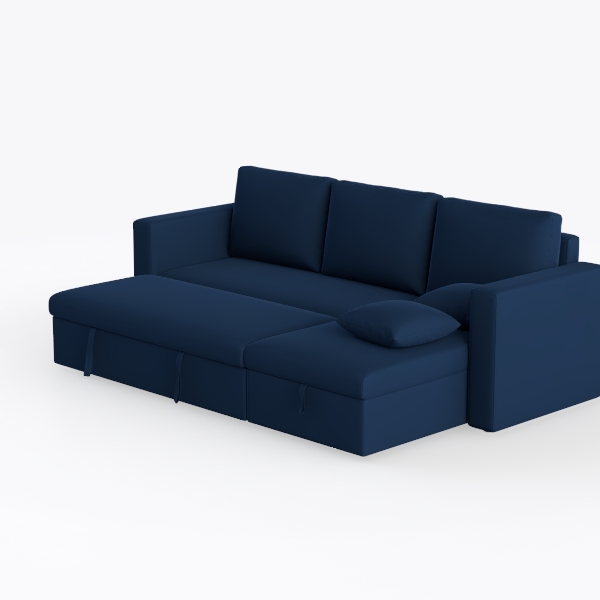 Inspired by the serene depths of the ocean, this sofa embodies a blend of calm elegance and practical design, drawing from the quiet allure of marine environments to create a space that feels both grounding and inviting. Crafted with a sumptuously soft, textured fabric in a rich indigo hue, its surface invites gentle touches—warm and slightly plush, like running fingers through water-worn stone. The deep, saturated blue catches light subtly, casting a soft glow that balances the simplicity of its clean, angular lines, making it a striking yet understated centerpiece.