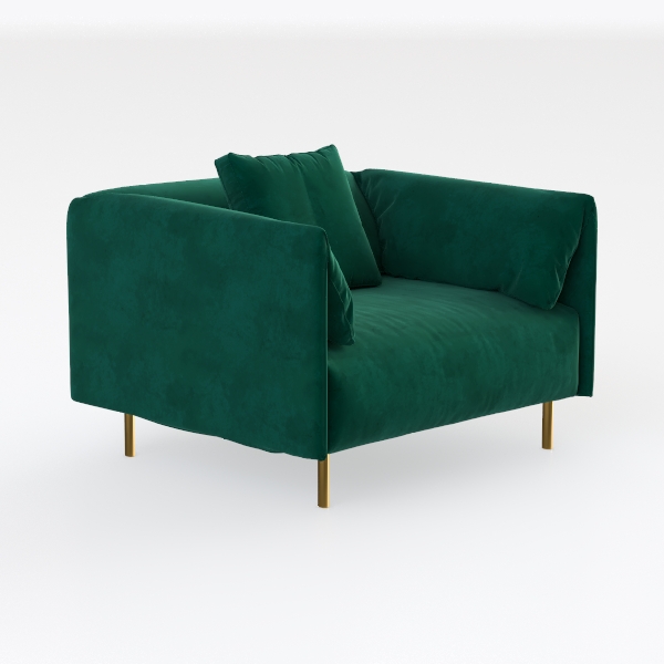 Beyond aesthetics, the chair prioritizes comfort: the generously deep seat and wide armrests cradle the body, making it ideal for long evenings of reading or casual conversations. The lightweight gold legs not only add a touch of glamour but also keep the piece stable and easy to move, ensuring it fits seamlessly into any layout.