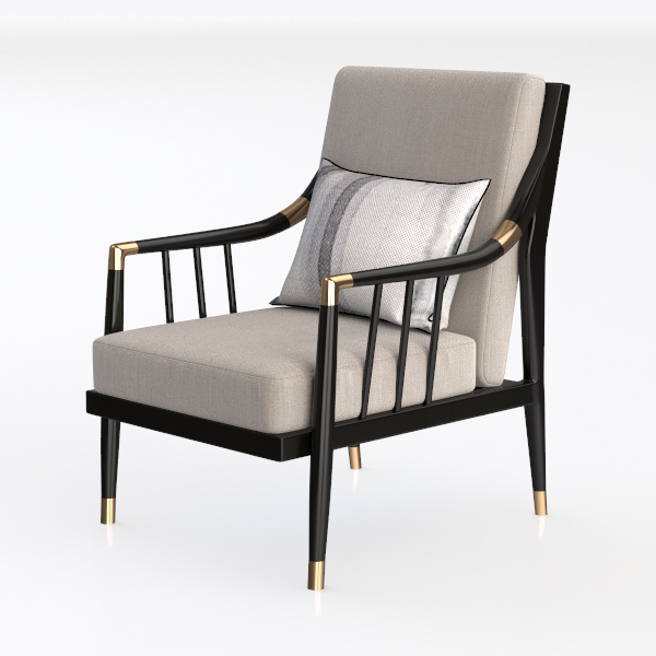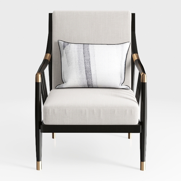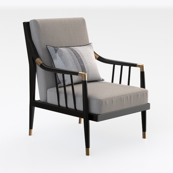 Crafted from a blend of modern minimalism and classic charm, this armchair features soft light gray upholstery for a cozy touch. Matte black frames with gold accents add sophisticated visual layers, balancing sleekness and warmth. A generous seat depth ensures ultimate comfort, perfect for a contemporary living room paired with marble coffee tables and metallic lamps.