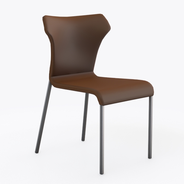 Inspired by mid-century modern minimalism, this chair blends soft, warm brown upholstery with a smooth, tactile surface, paired with sleek metallic silver legs for a modern touch. Perfect for contemporary dining rooms or living spaces, it complements wooden tables and neutral decor beautifully. Its curved back offers gentle lumbar support, ensuring comfort during long meals, while sturdy legs guarantee stability.