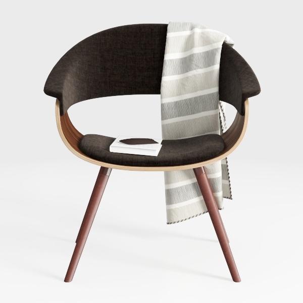 Armen Living Butterfly Dining Chair in Charcoal Fabric and Walnut Wood Finish 22D x 21W x 29H in