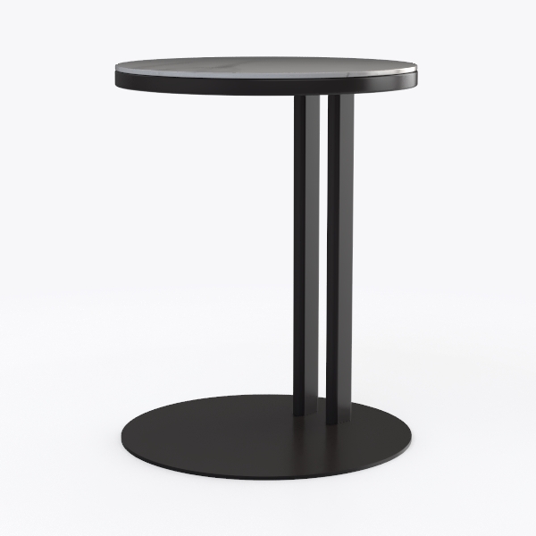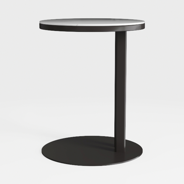 Inspired by minimalist architecture, this side table blends clean lines with organic curves. Its sleek marble top contrasts with matte black metal frame, creating smooth and structured textures. Ideal for modern living rooms or home offices, pairing seamlessly with minimalist sofas or wooden desks. The round top offers ample space for lamps or decor, while the sturdy base ensures stability, enhancing a contemporary, understated aesthetic.