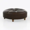 Inspired by classic furniture design, this round ottoman brings a touch of elegance to any space. Its sumptuous leather upholstery exudes a rich, warm hue, while the quilted detail adds a layer of sophistication, inviting both tactile and visual engagement. The sturdy wooden legs provide a perfect contrast, grounding the piece and enhancing its overall charm.