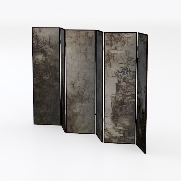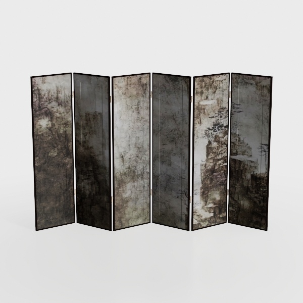 Inspired by traditional East Asian ink painting, this freestanding screen features six panels with layered, misty mountain landscapes. Dark wooden frames contrast softly with muted grays, browns, and whites of textured surfaces, evoking calm depth. Perfect for minimalist or new Chinese-style living rooms, it pairs with wooden furniture and plants, adding an artistic focal point while dividing spaces with functional elegance.