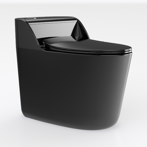 WinZo Square One Piece Toilet Black With Gold Button For Modern Bathroom,Diamond-shaped Sleek Design Elonagted Rectangle 17" Comfort Bowl,Glossy Black
