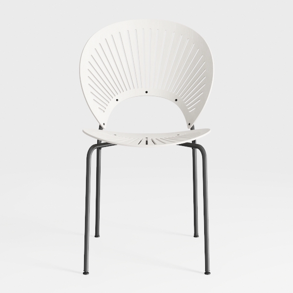 Inspired by natural shell forms, this chair has a curved, light-back design with elegant slits for breathability. Its smooth, matte white surface feels cool to the touch, while sleek black metal legs add a modern edge. Perfect for a minimalist dining room or living space, it pairs beautifully with wooden tables and soft greenery, and its lightweight frame with contoured back ensures lasting comfort.