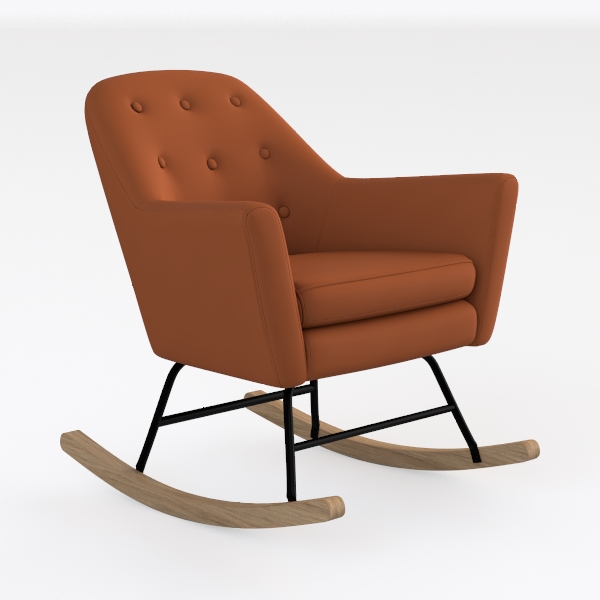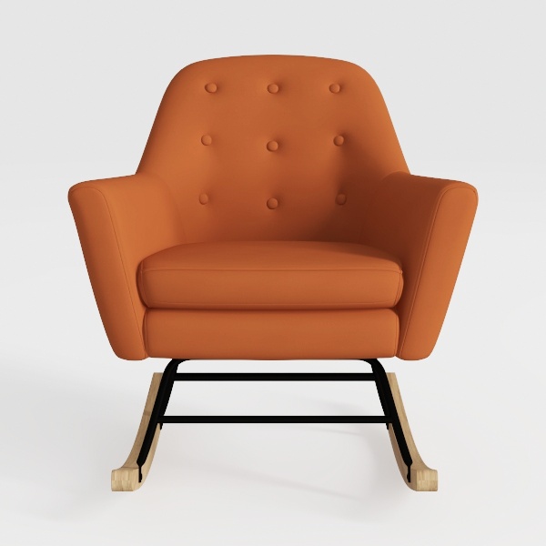 Designed with mid-century modern flair, this armchair features a warm terracotta upholstery, tufted backrest, and plush, soft texture for instant relaxation. Curved arms and wooden rocking legs add elegance, perfect for cozy living rooms or reading nooks. Pair with marble coffee tables and brushed brass lamps for classic-modern charm. Generous seat depth and ergonomic backrest ensure comfort, smooth rocking enhancing a serene vibe.
