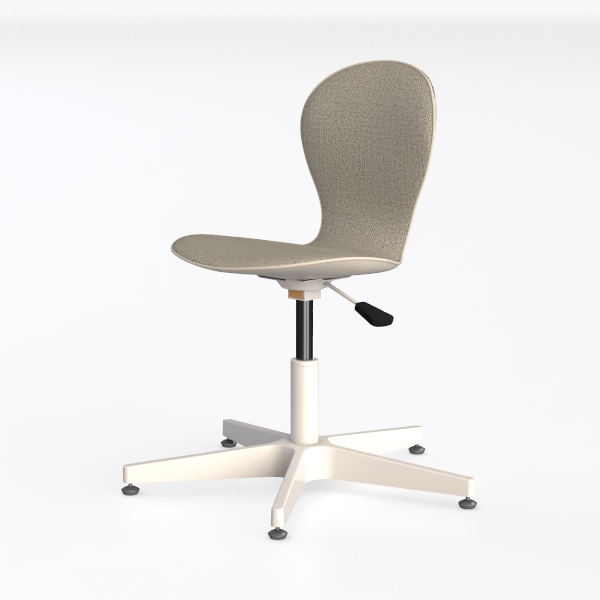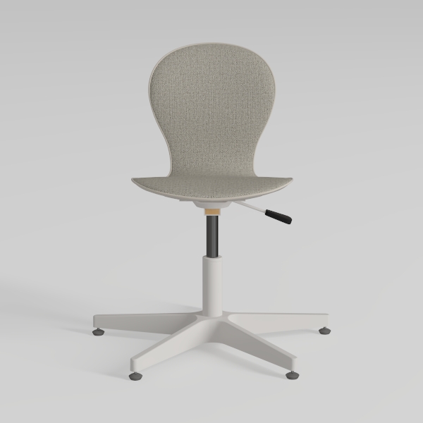 This chair takes inspiration from organic curves and minimalist design, with soft gray fabric upholstery offering a tactile blend of comfort and texture, and a smooth white metal base exuding a clean, contemporary vibe. Ideal for a modern home office or minimalist study, it pairs seamlessly with wooden desks and sleek task lamps, while its ergonomic backrest and height-adjustable lever ensure personalized comfort for long work hours.