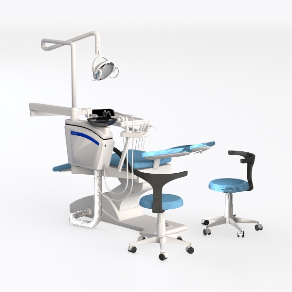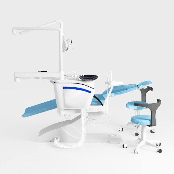Designed for clinical efficiency, its sleek form merges medical precision with user-centric comfort. Smooth white surfaces paired with soft blue accents create a clean, modern aesthetic, while matte textures ensure durability. Ideal for contemporary dental clinics, it complements minimalist decor with uncluttered lines and integrated storage. Adjustable chair and mobile stool offer easy maneuverability, enhancing workflow for professionals.