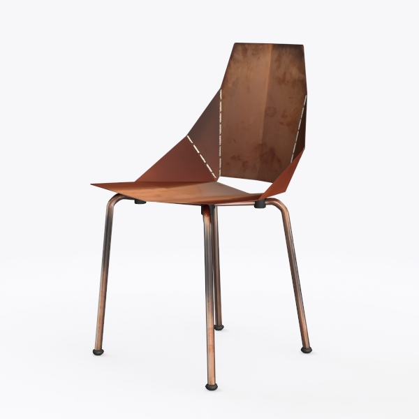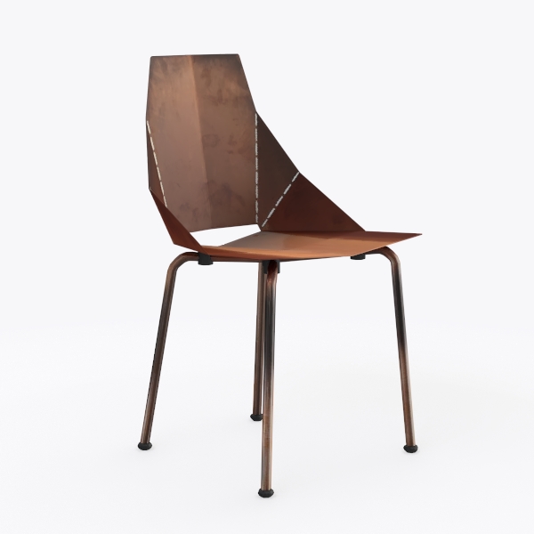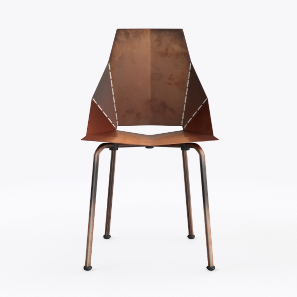 Inspired by industrial retro design, this chair features a warm, patinaed copper backrest with sharp geometric lines and sleek black metal legs. Its textured copper surface radiates vintage charm, while smooth metal legs add modern minimalism. Ideal for industrial dining spaces or cozy lofts, pairing well with wooden tables and leather cushions. A contoured seat offers excellent support, slender legs ensure steady balance, blending style and practicality seamlessly.