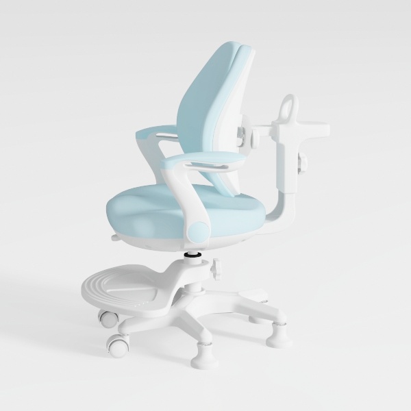 Inspired by minimalist ergonomics, soft curves blend function and modern style. Sleek white frames meet baby blue upholstery—smooth, visually light and airy, calming to touch, fresh vibe. Perfect for home offices or study corners, pairs with wooden desks and potted plants for a serene workspace. Padded seat and adjustable back support ensure all-day comfort; footrest and casters add practical movement.
