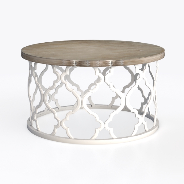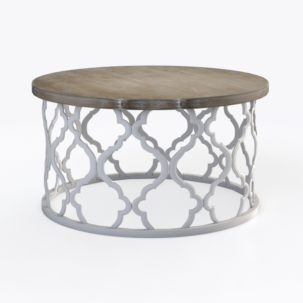 Inspired by traditional Moroccan latticework patterns, the round coffee table blends a warm weathered wood top with a sleek white metal base; its lacy cutouts create an airy, light-filled vibe. Ideal for modern minimalist living rooms paired with plush sofas and statement floor lamps, it offers a sturdy structure and generous tabletop space for daily use.