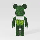 A 3D model of a stylized bear sculpture, featuring green fern-patterned exterior and a transparent torso with green spherical elements, and a vibrant, nature-inspired aesthetic. It has smooth surfaces and clear structural details and is suitable for home decor and art collection displays.