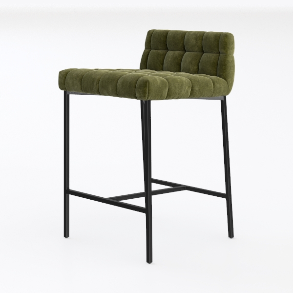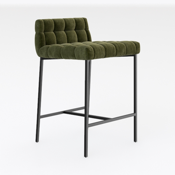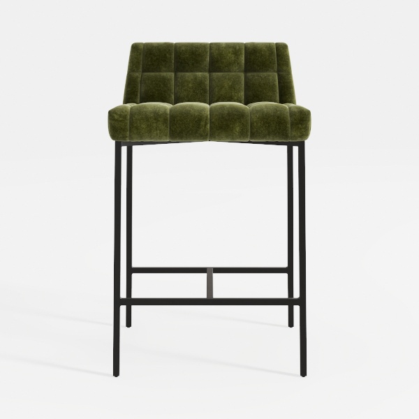 Inspired by mid-century modern elegance, this bar stool blends soft luxury with sleek minimalism. Its plush green velvet seat, with subtle square tufting, feels sumptuously tactile, while the slender black metal frame adds crisp definition. Perfect for modern kitchen bars or home lounges, it balances comfort and style, with a sturdy build that suits standard counter heights.