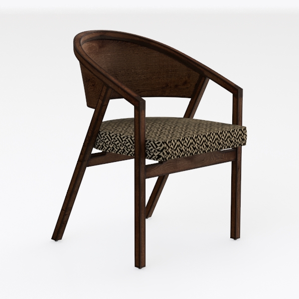 Blending mid-century modern charm, this armchair draws inspiration from organic curves and warm wood tones. Its solid oak frame has a smooth, tactile texture with visible grain, while the geometric-patterned upholstery adds subtle visual depth, soft to the touch. Perfect for a minimalist living room or study, it pairs beautifully with marble side tables and linen curtains. A deep, contoured seat offers excellent support, ideal for cozy afternoons of reading or conversation.