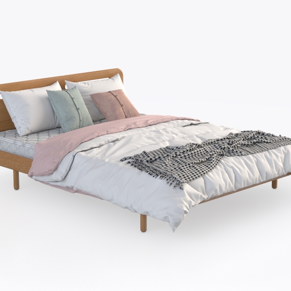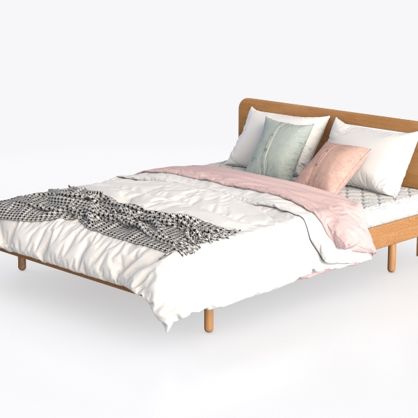 Inspired by natural warmth, it blends soft wood tones with gentle pastels. The smooth wooden headboard offers a warm touch, while the white linen sheet and textured houndstooth quilt add softness and visual rhythm. Perfect for a cozy Scandinavian-inspired bedroom, it pairs beautifully with wooden nightstands and potted greenery. Sturdy wooden legs ensure stability, and the low-profile design maximizes floor space, ideal for small and large bedrooms.