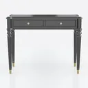 Inspired by the timeless charm of 18th-century European furniture—think Regency and Empire styles—this console table merges classic elegance with modern simplicity. Its black surface, likely a smooth, high-gloss finish on solid wood or premium veneer, feels cool and slightly matte to the touch, while the subtly curved, tapering legs, capped with polished gold metal feet, add a warm, luxurious contrast. The two rectangular drawers, adorned with small, round gold handles, echo the metallic accents, balancing the table’s bold black hue with understated opulence.