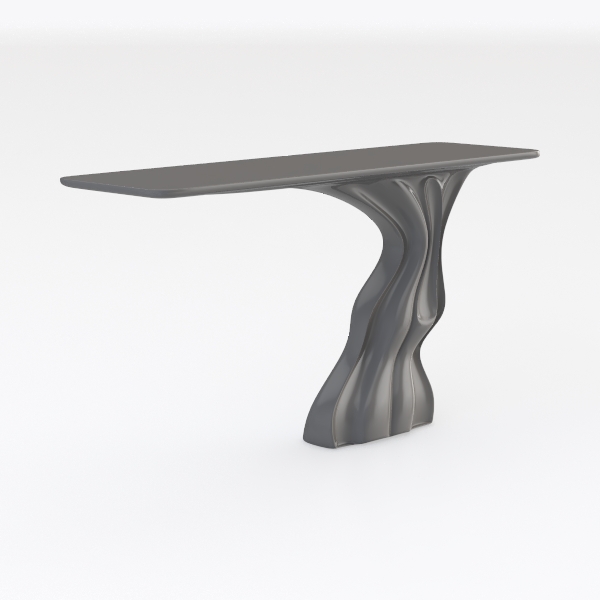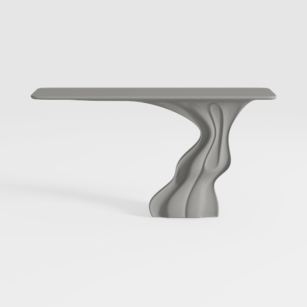 Inspired by natural fluidity, merging organic curves of flowing water and sculptural rock formations, this console table features a smooth, matte gray surface. Its undulating base creates a serene, sculptural presence, blending minimalism with organic artistry. Spacious enough for decor, it pairs beautifully with modern sofas and geometric accents, enhancing both functionality and striking visual appeal in living rooms or entryways.