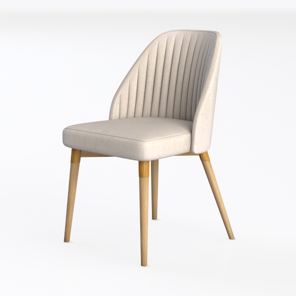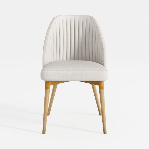 Inspired by Scandinavian minimalism, this chair merges clean lines with natural elements. The soft off-white upholstery, with subtle vertical channels, offers a gentle touch, while warm oak legs add an earthy, natural contrast. Its curved back and tapering legs create an elegant, lightweight silhouette, perfect for modern dining or cozy living spaces—pair with wooden tables and potted greenery. Adequate seat depth ensures comfortable seating, balancing style and practicality seamlessly.